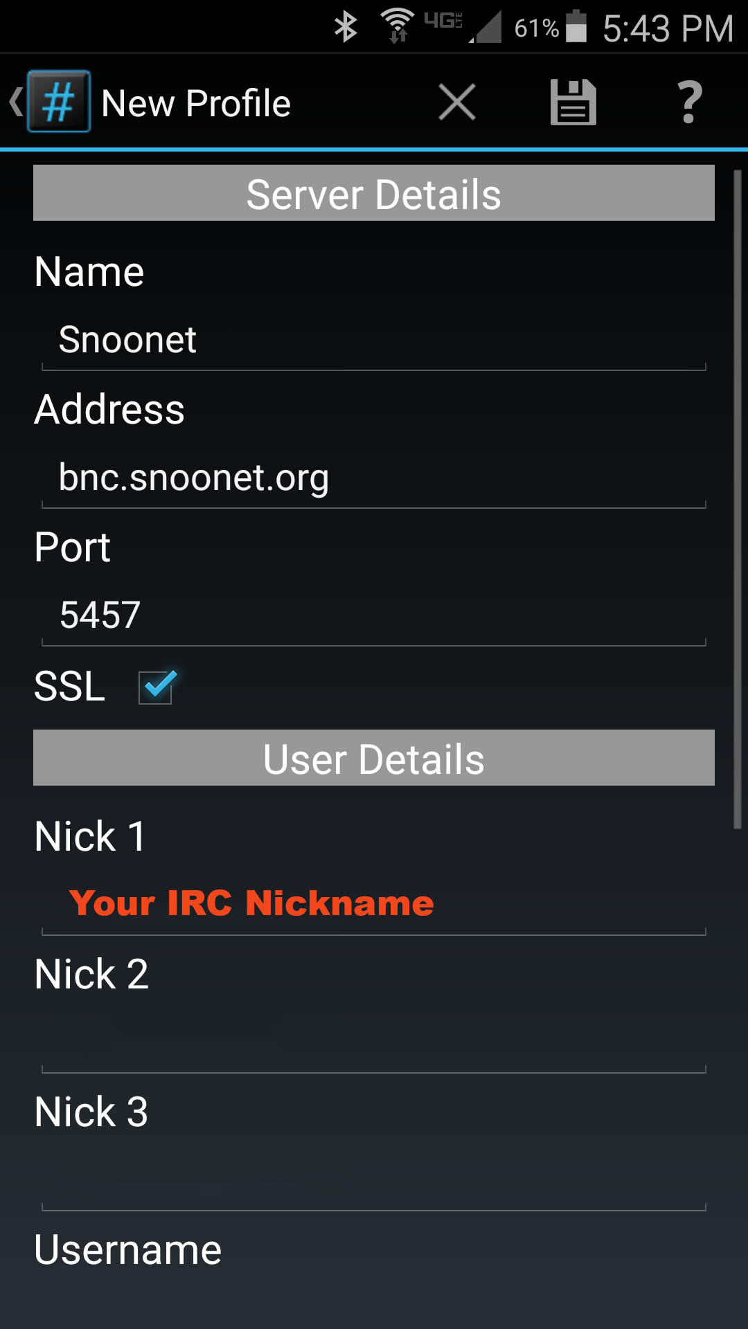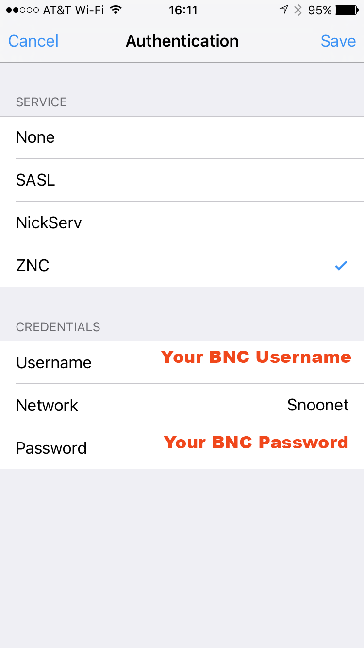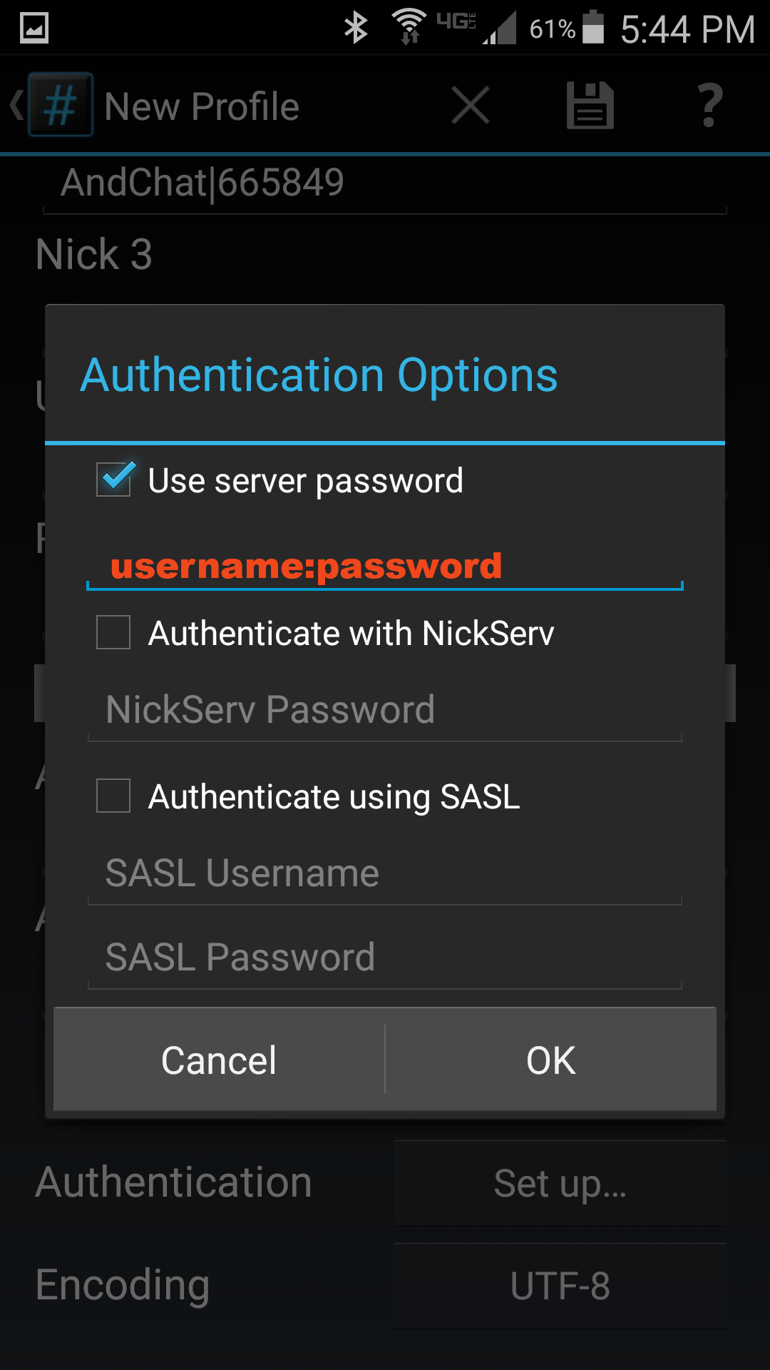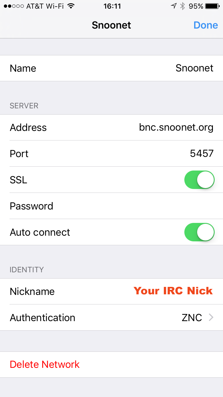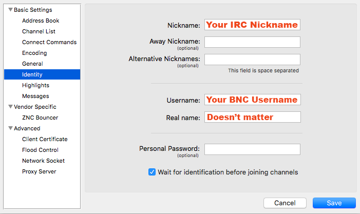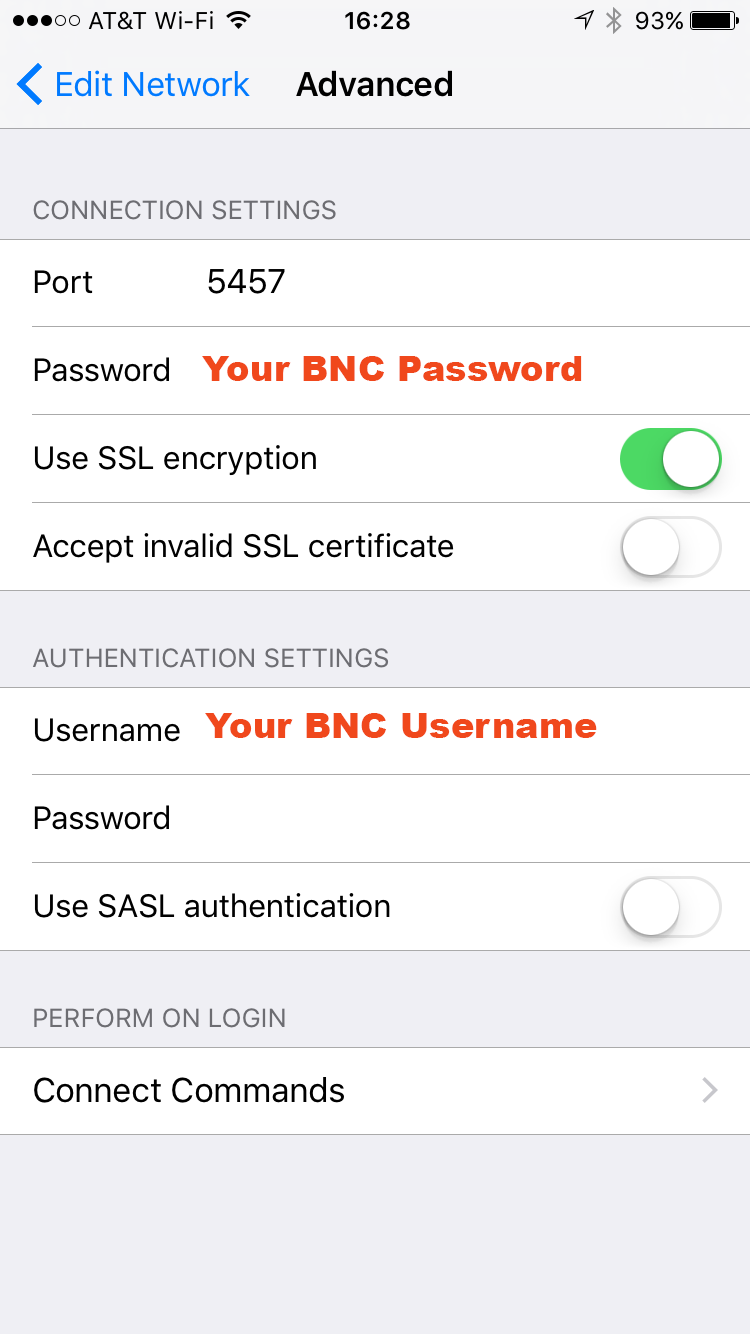 password in your IRC client. This password should be “username:password”, using