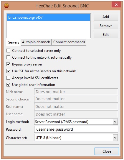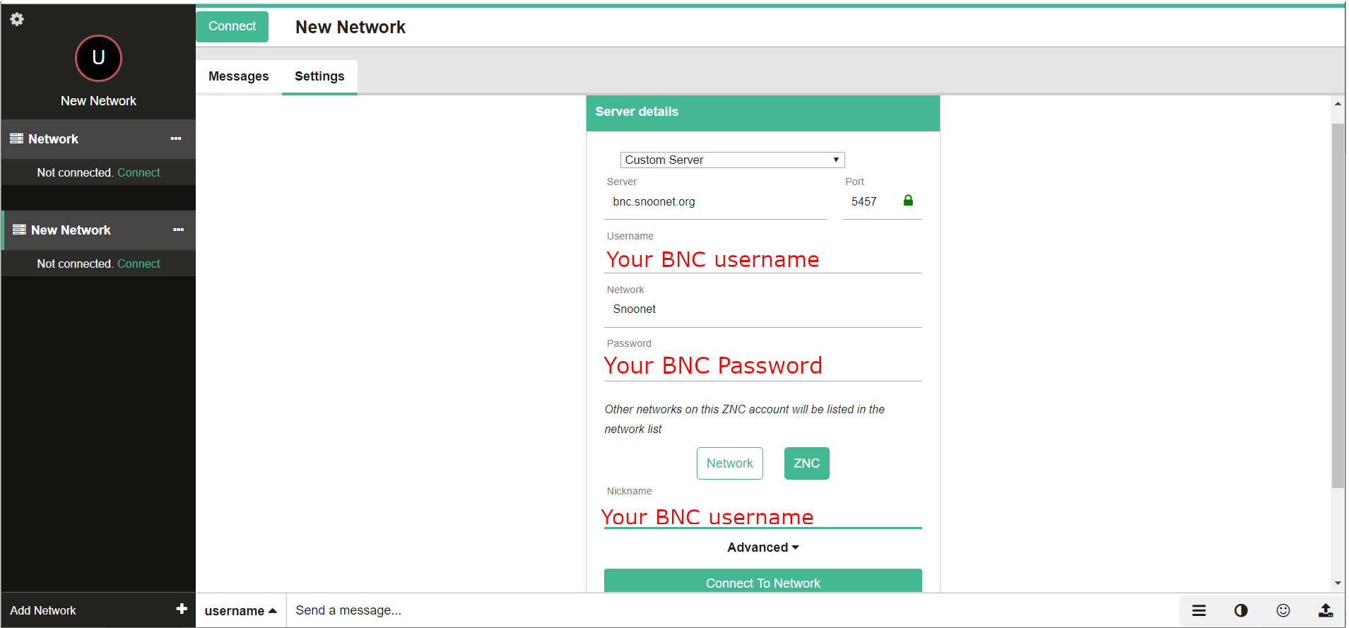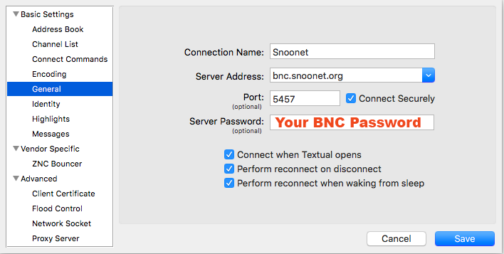Then connect to this server. If your bouncer becomes disconnected from Snoonet